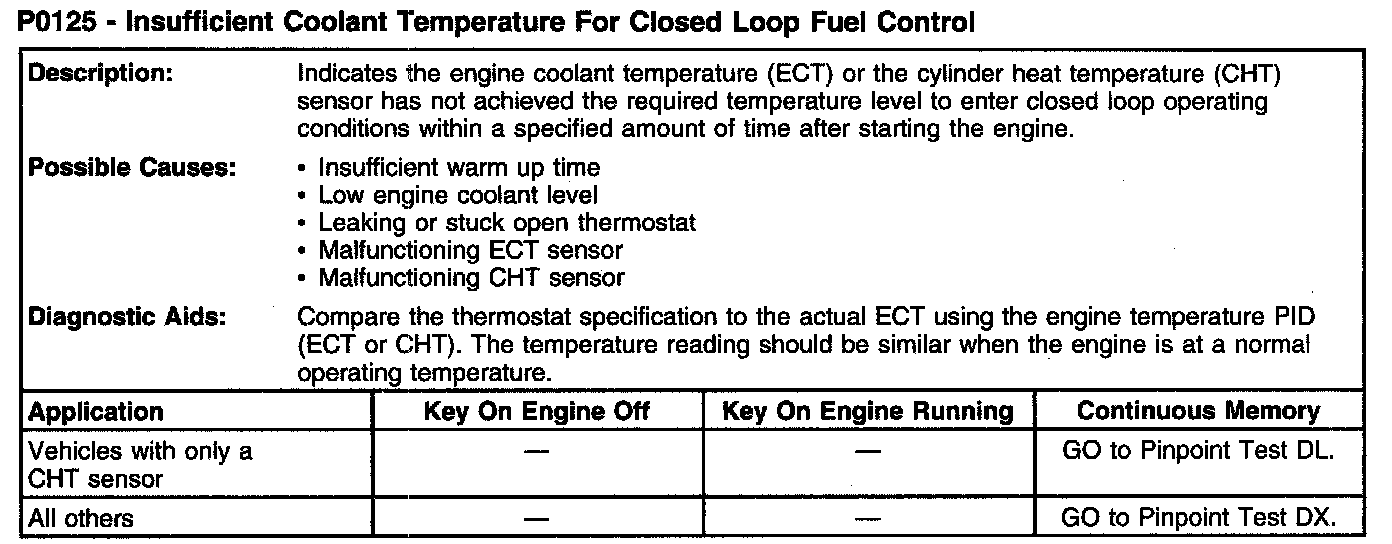P0125 - Insufficient Coolant Temperature For Closed Loop Fuel Control: