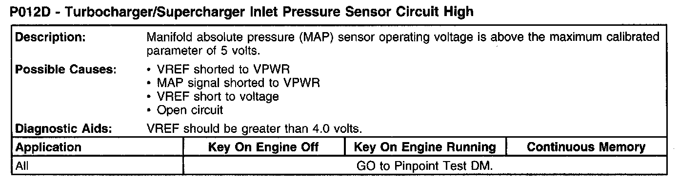 P012D - Turbocharger/Supercharger Inlet Pressure Sensor Circuit High: