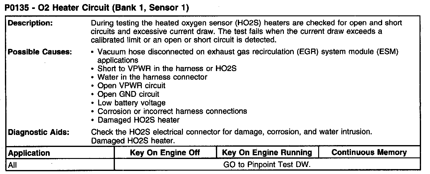 P0135 - O2 Heater Circuit (Bank 1, Sensor 1):