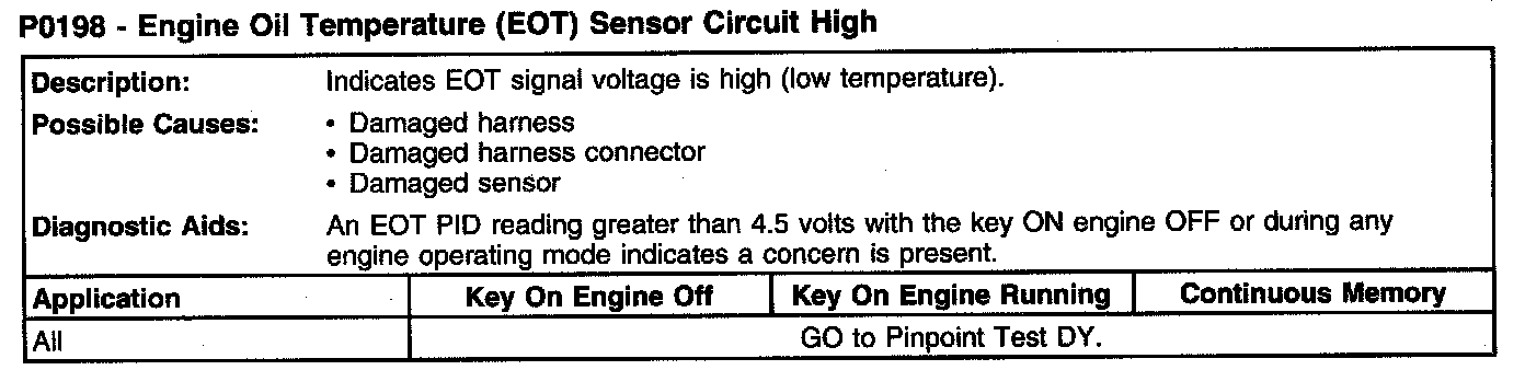 P0198 - Engine Oil Temperature (EOT) Sensor Circuit High: