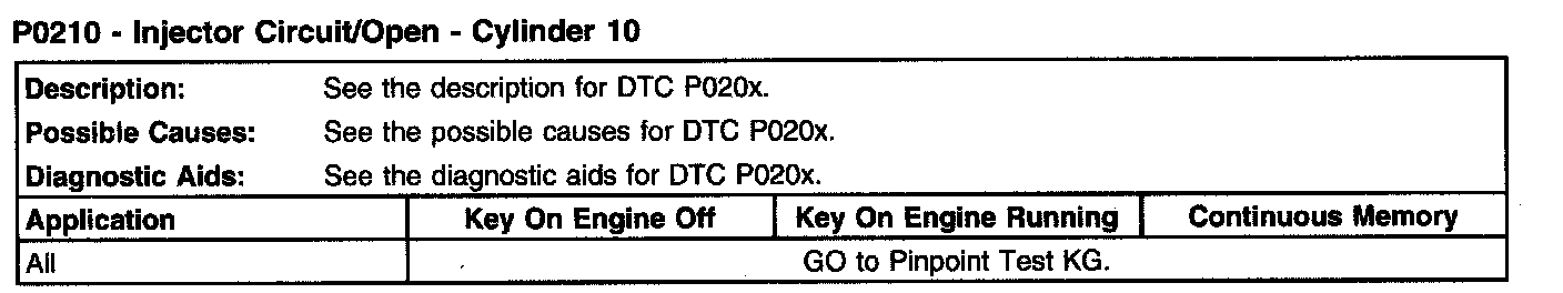 P0210 - Injector Circuit/Open - Cylinder 10: