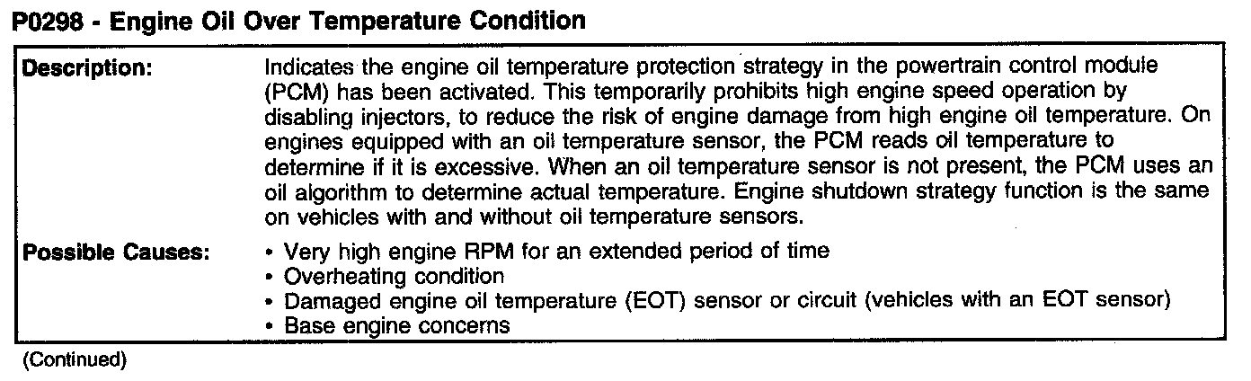 P0298 - Engine Oil Over Temperature Condition (Part 2):