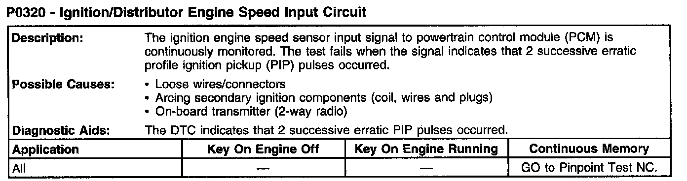 P0320 - Ignition/Distribution Engine Speed Input Circuit:
