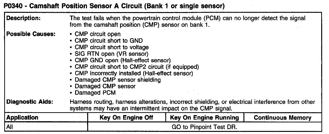 P0340 - Camshaft Position Sensor A Circuit (Bank 1 Or Single Sensor):