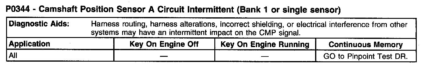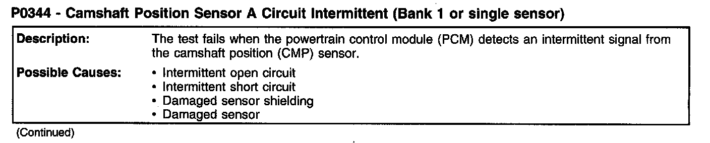 P0344 - Camshaft Position Sensor A Circuit Intermittent (Bank 1 Or Single Sensor) (Part 2):