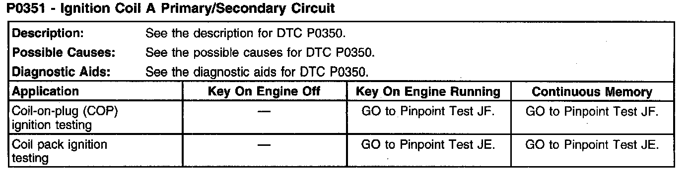 P0351 - Ignition Coil A Primary/Secondary Circuit: