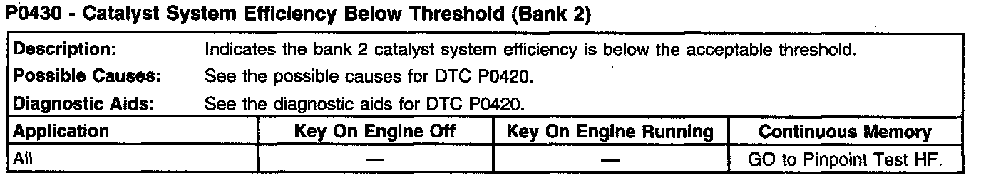 P0430 - Catalyst System Efficiency Below Threshold (Bank 2):