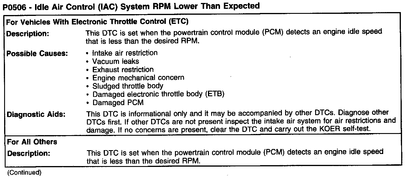 P0506 - Idle Air Control (IAC) System RPM Lower Than Expected (Part 1):