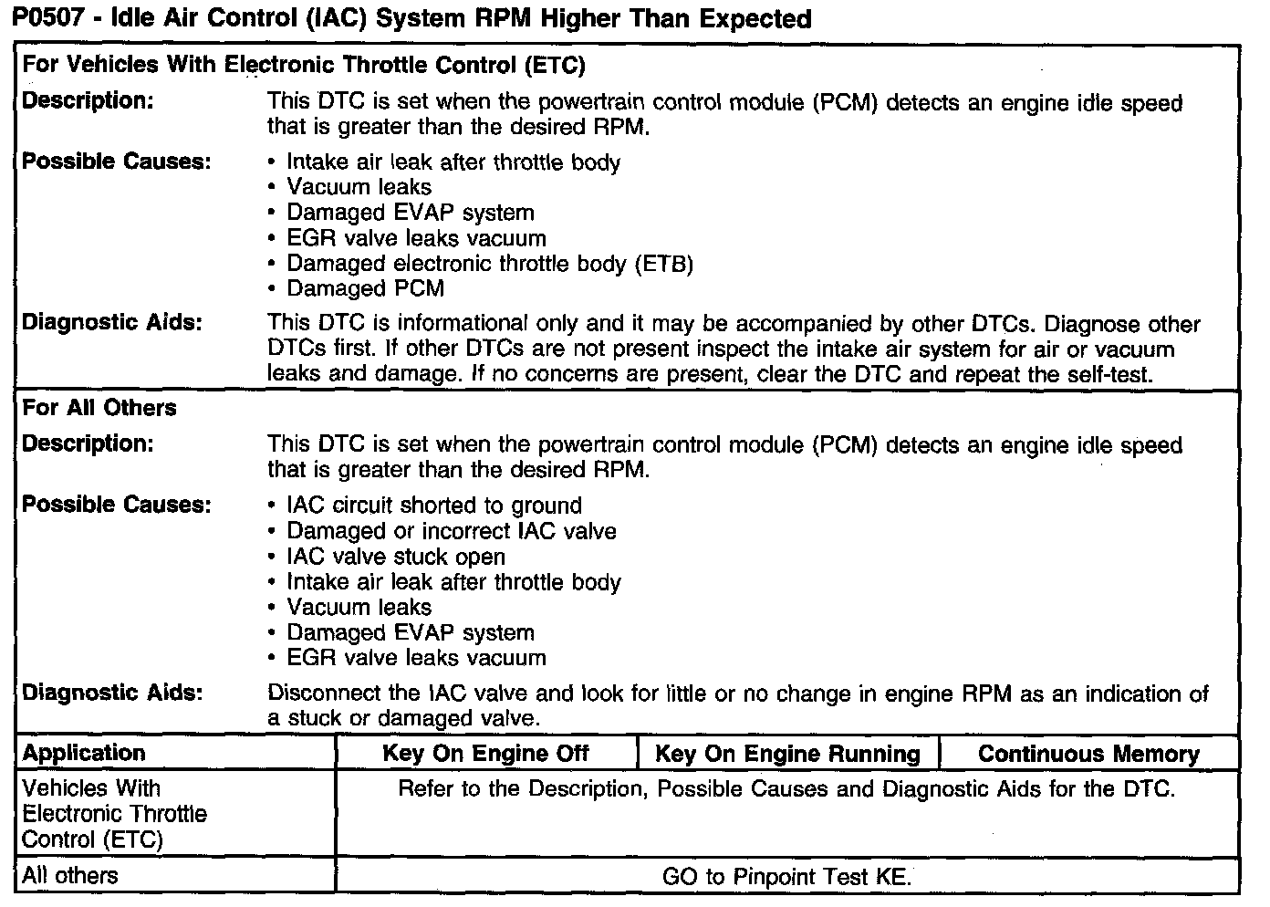 P0507 - Idle Air Control (IAC) System RPM Higher Than Expected: