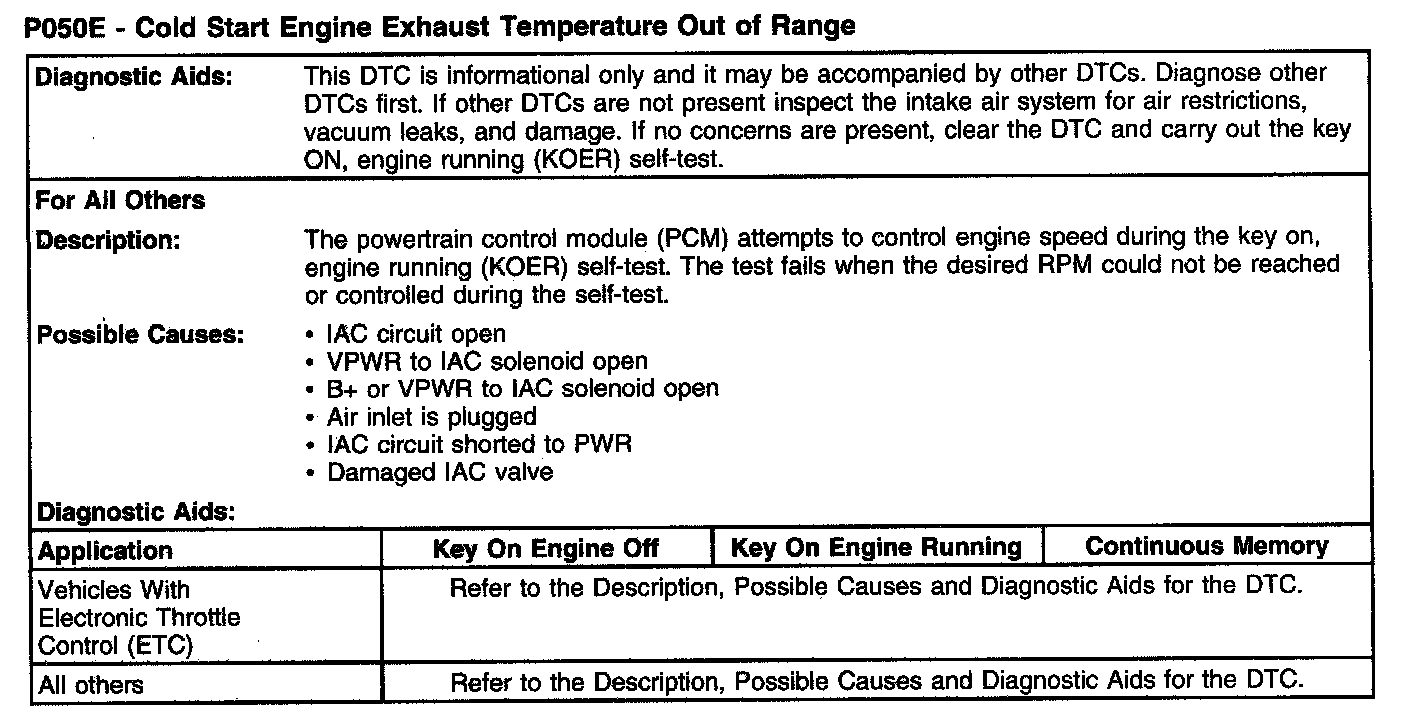 P050E - Cold Start Engine Exhaust Temperature Out Of Range (Part 1):