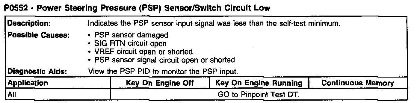 P0552 - Power Steering Pressure (PSP) Sensor/Switch Circuit Low: