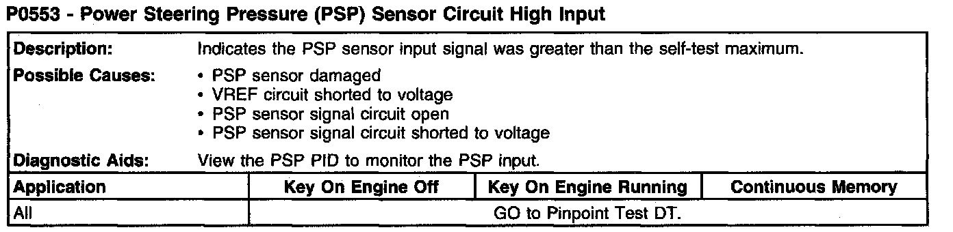 P0553 - Power Steering Pressure (PSP) Sensor Circuit High Input: