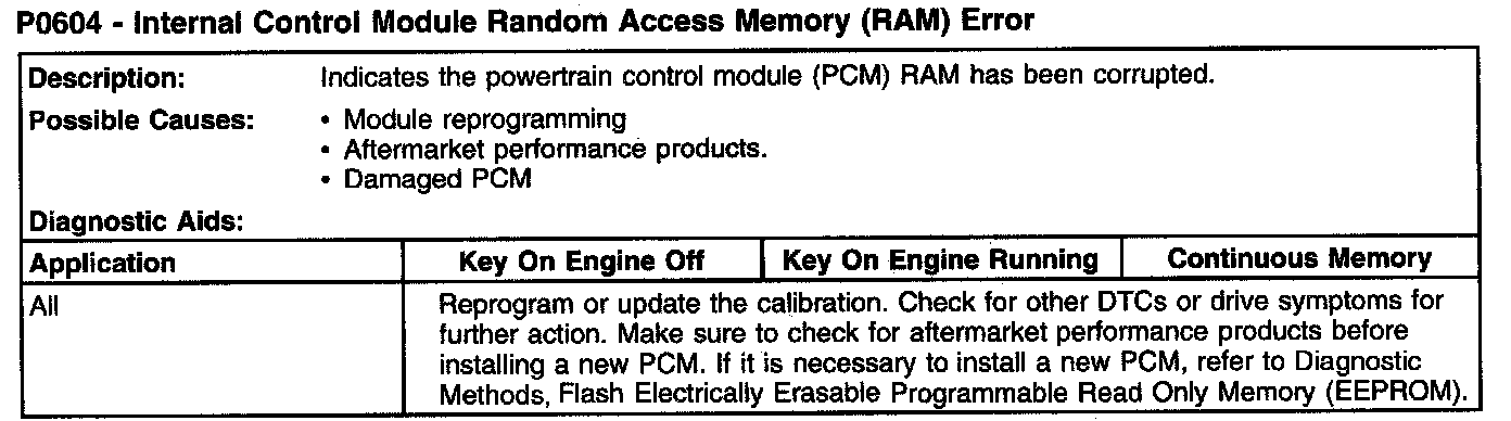 P0604 - Internal Control Module Random Access Memory (RAM) Error: