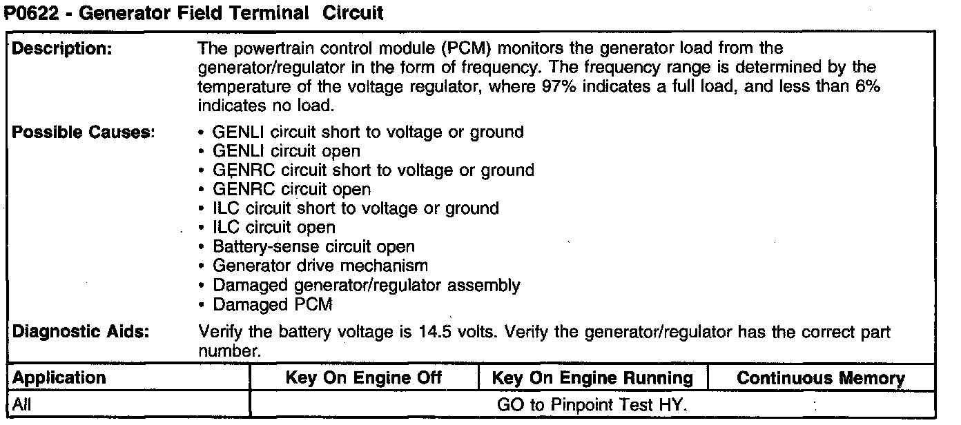 P0622 - Generator Field Terminal Circuit: