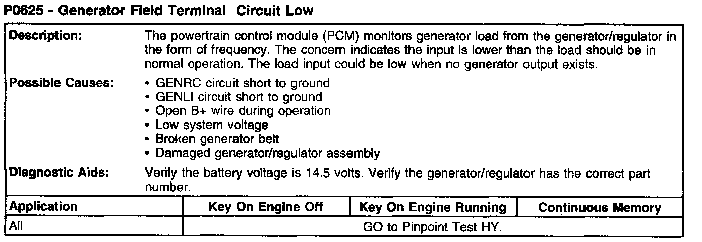 P0625 - Generator Field Terminal Circuit Low: