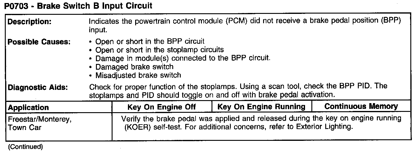 P0703 - Brake Switch B Input Circuit (Part 1):