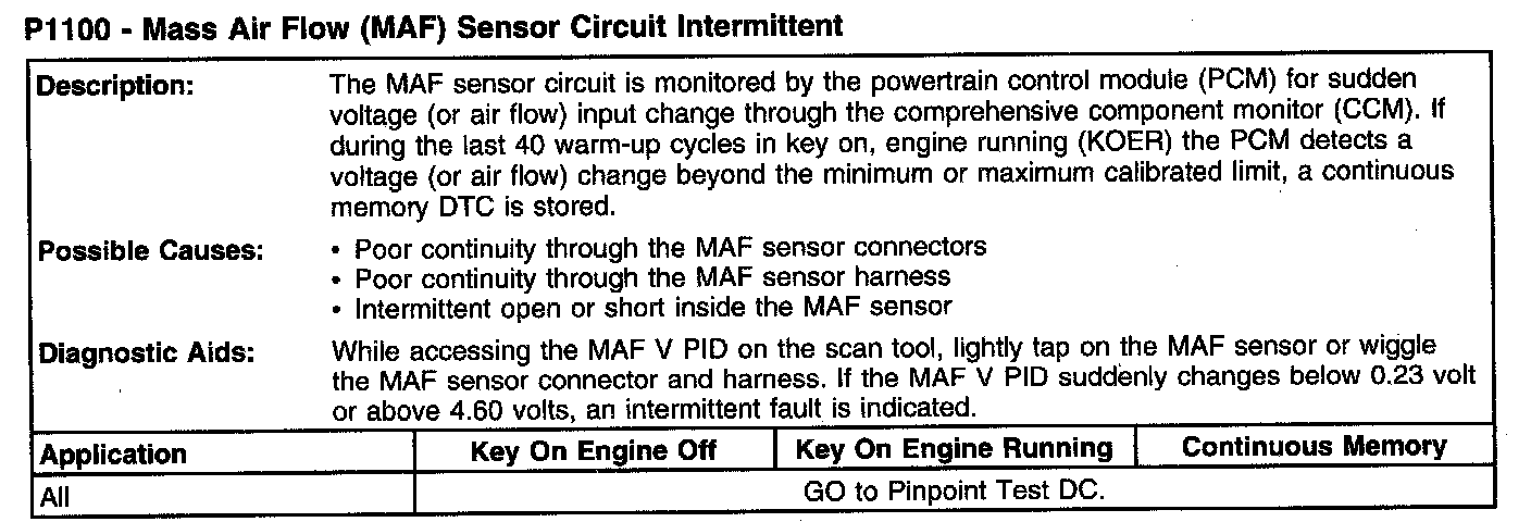 P1100 - Mass Air Flow (MAF) Sensor Circuit Intermittent:
