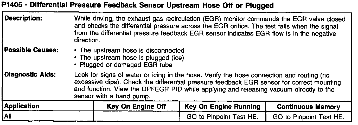 P1405 - Differential Pressure Feedback Sensor Upstream Hose Off Or Plugged: