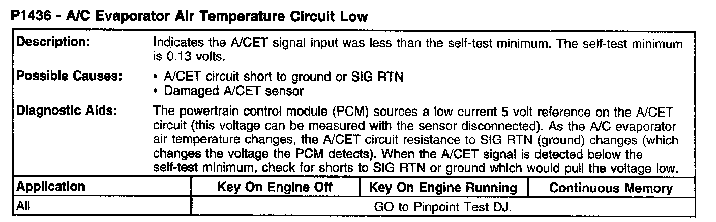 P1436 - A/C Evaporator Air Temperature Circuit Low: