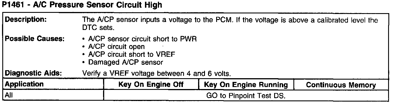 P1461 - A/C Pressure Sensor Circuit High: