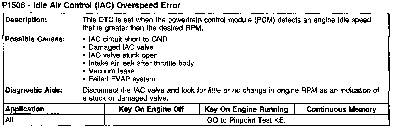 P1506 - Idle Air Control (IAC) Overspeed Error: