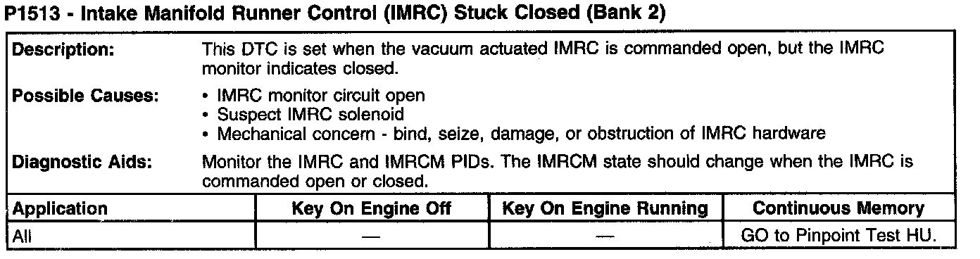 P1513 - Intake Manifold Runner Control (IMRC) Stuck Closed (Bank 2):