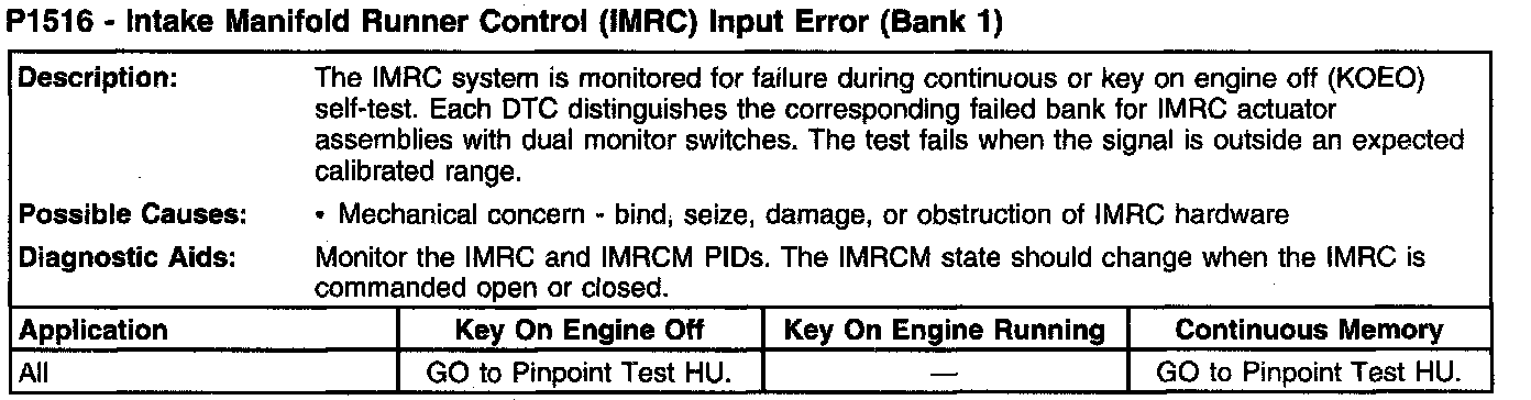 P1516 - Intake Manifold Runner Control (IMRC) Input Error (Bank 1):
