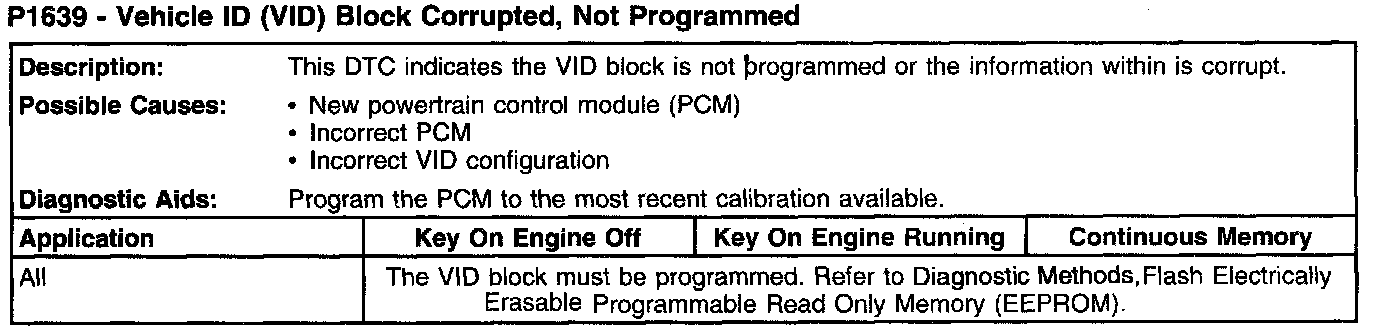 P1639 - Vehicle ID (VID) Block Corrupted, Not Programmed: