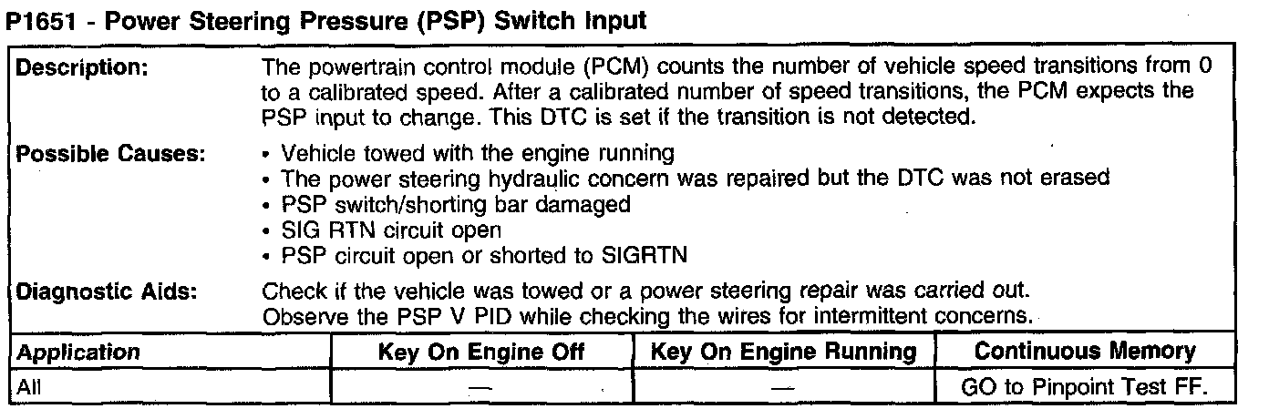 P1651 - Power Steering Pressure (PSP) Switch Input: