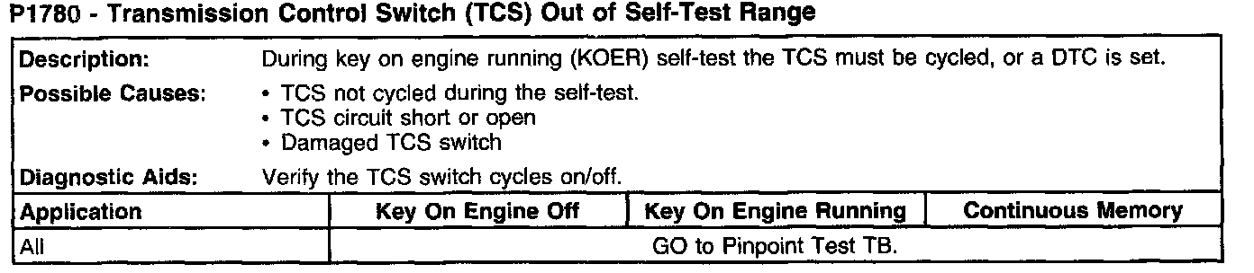 P1780 - Transmission Control Switch (TCS) Out Of Self-Test Range: