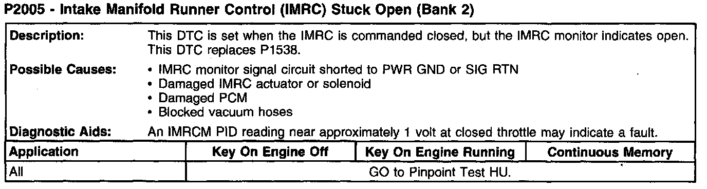 P2005 - Intake Manifold Runner Control (IMRC) Stuck Open (Bank 2):