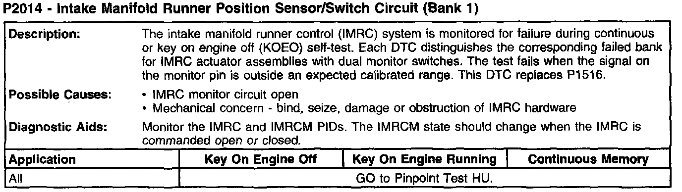 P2014 - Intake Manifold Runner Position Sensor/Switch Circuit (Bank 1):