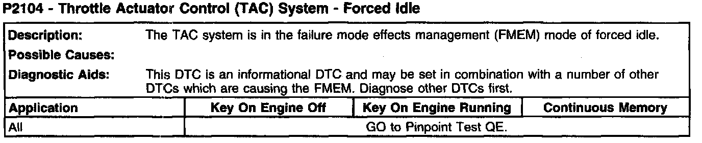 P2104 - Throttle Actuator Control (TAC) System - Forced Idle:
