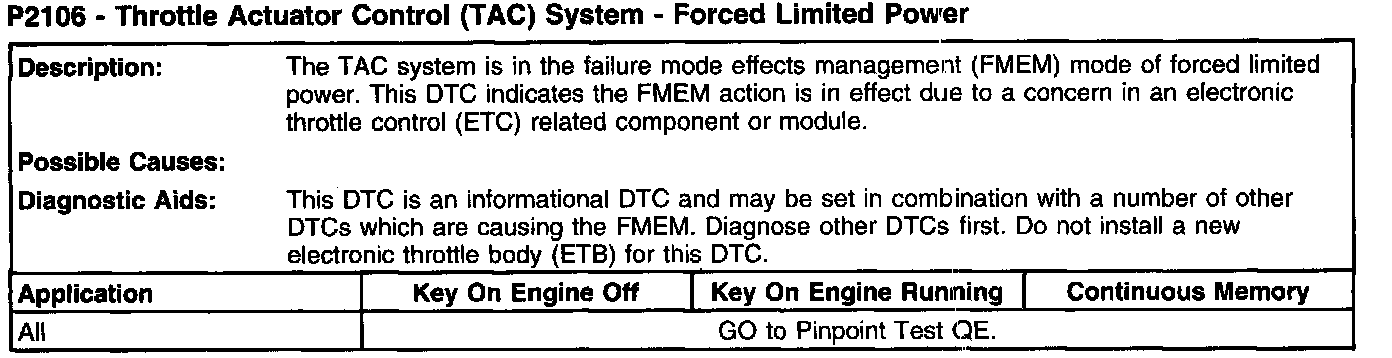 P2106 - Throttle Actuator Control (TAC) System - Forced Limited Power: