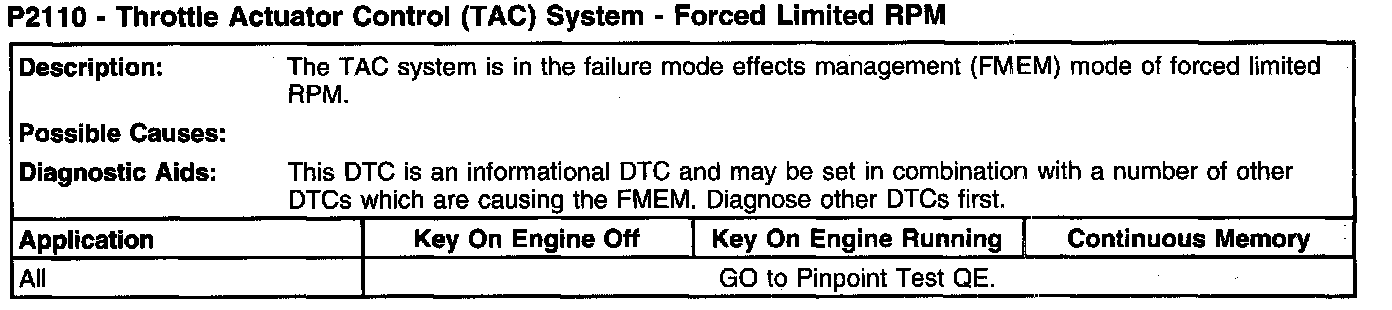 P2110 - Throttle Actuator Control (TAC) System - Forced Limited RPM: