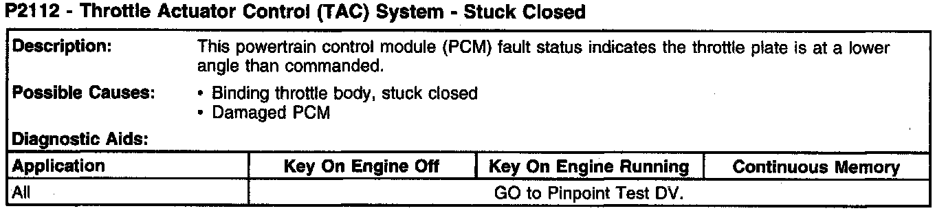 P2112 - Throttle Actuator Control (TAC) System - Stuck Closed: