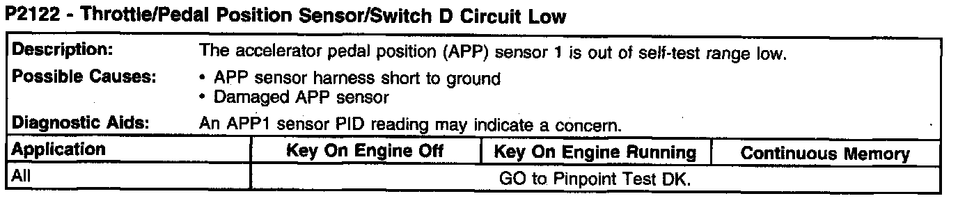 P2122 - Throttle/Pedal Position Sensor/Switch D Circuit Low: