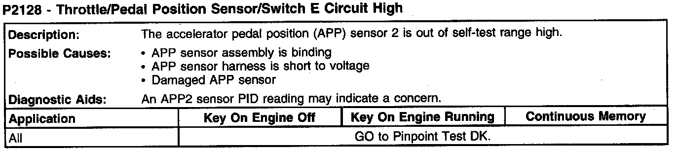 P2128 - Throttle/Pedal Position Sensor/Switch E Circuit High: