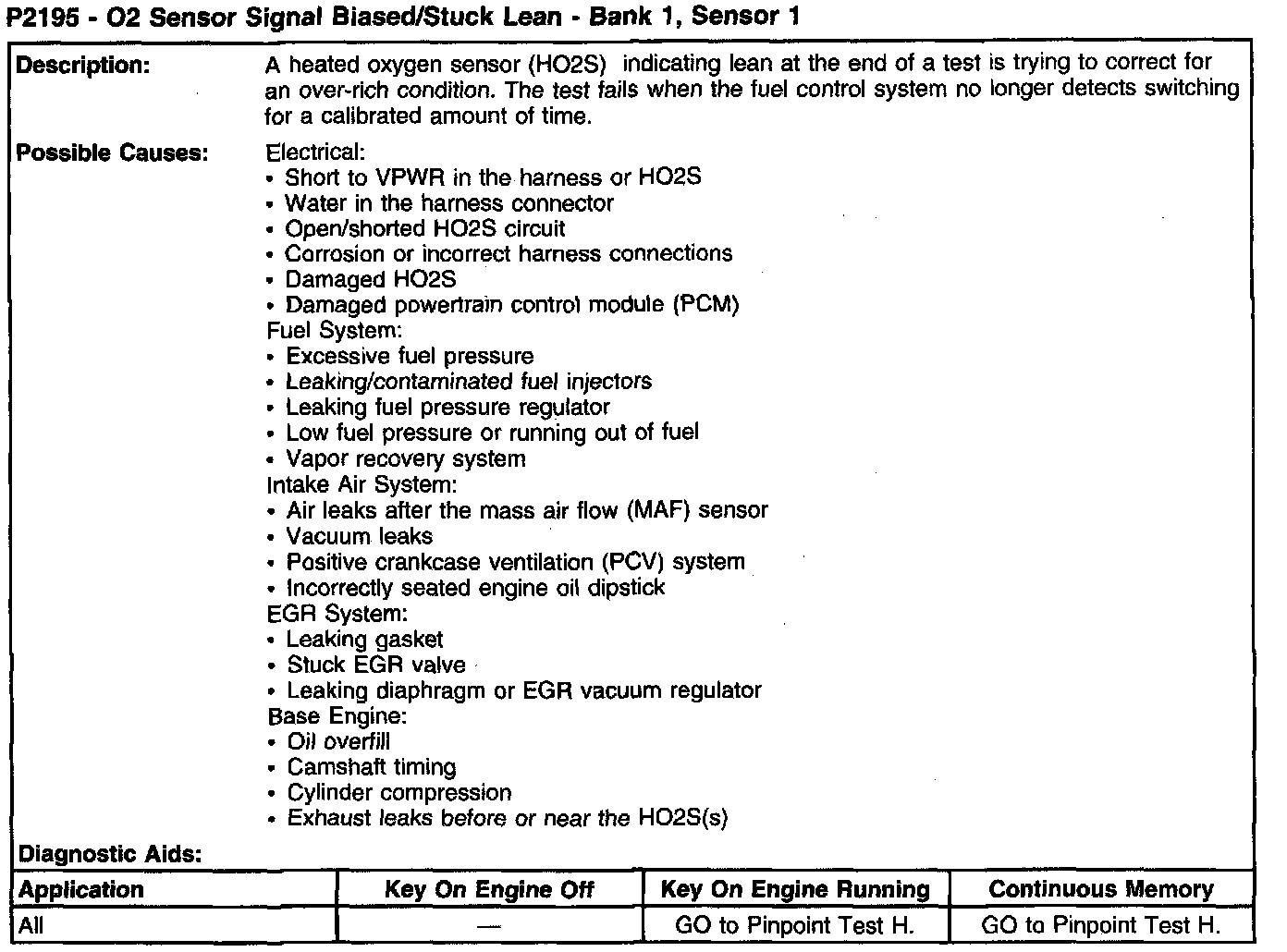 P2195 - O2 Sensor Signal Biased/Stuck Lean - Bank 1, Sensor 1: