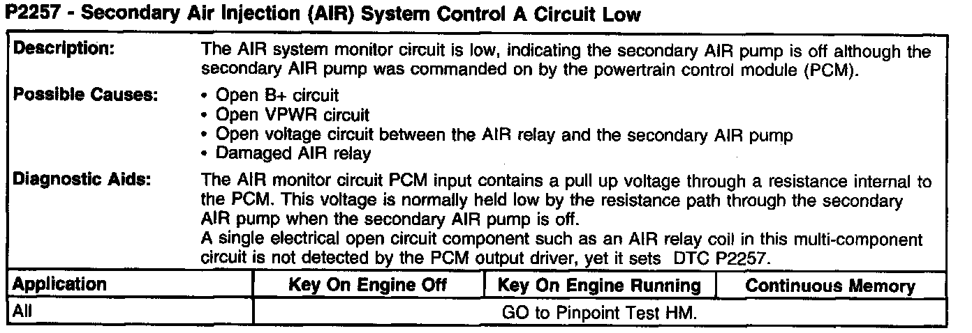 P2257 - Secondary Air Injection (AIR) System Control A Circuit Low: