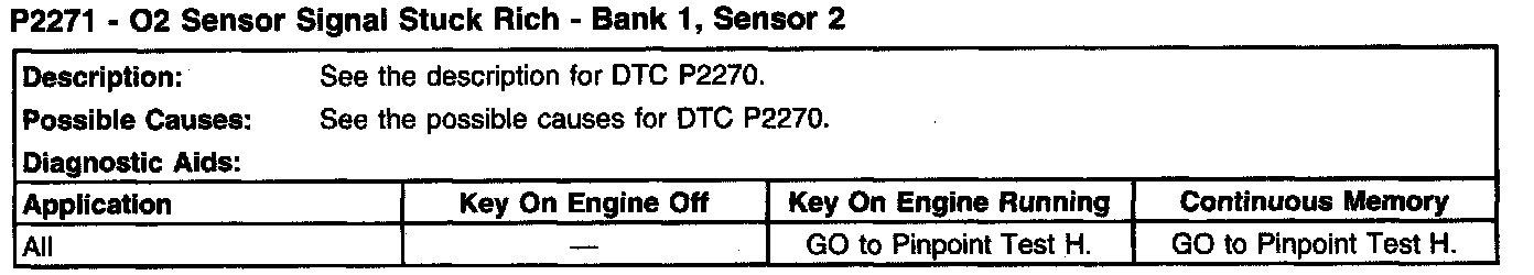 P2271 - O2 Sensor Signal Stuck Rich - Bank 1, Sensor 2: