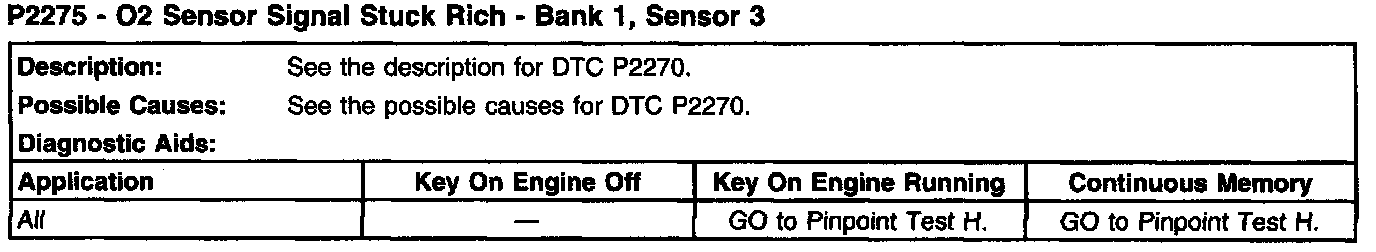 P2275 - O2 Sensor Signal Stuck Rich - Bank 1, Sensor 3: