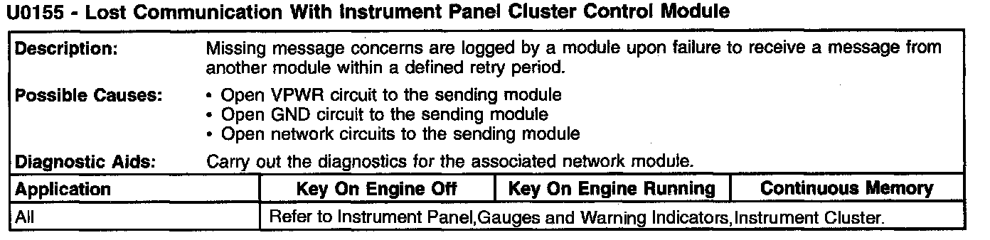 U0155 - Lost Communication With Instrument Panel Cluster Control Module: