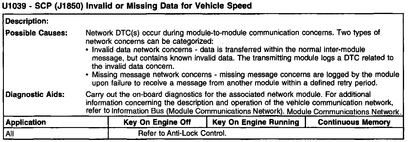 U1039 - SCP (J1850) Invalid Or Missing Data For Vehicle Speed: