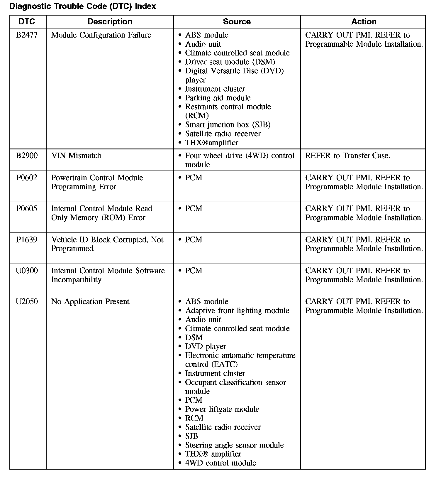 B2477-B2900 / P0602-P1639 / U0300-U2050: