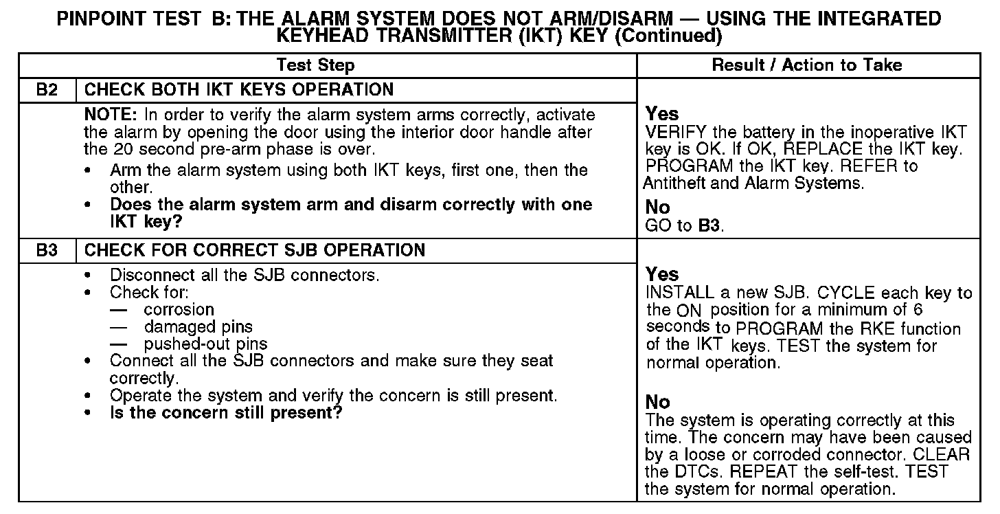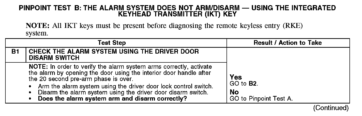 PINPOINT TEST B: THE ALARM SYSTEM DOES NOT ARM/DISARM - USING THE INTEGRATED KEYHEAD TRANSMITTER (IKT) KEYB1: