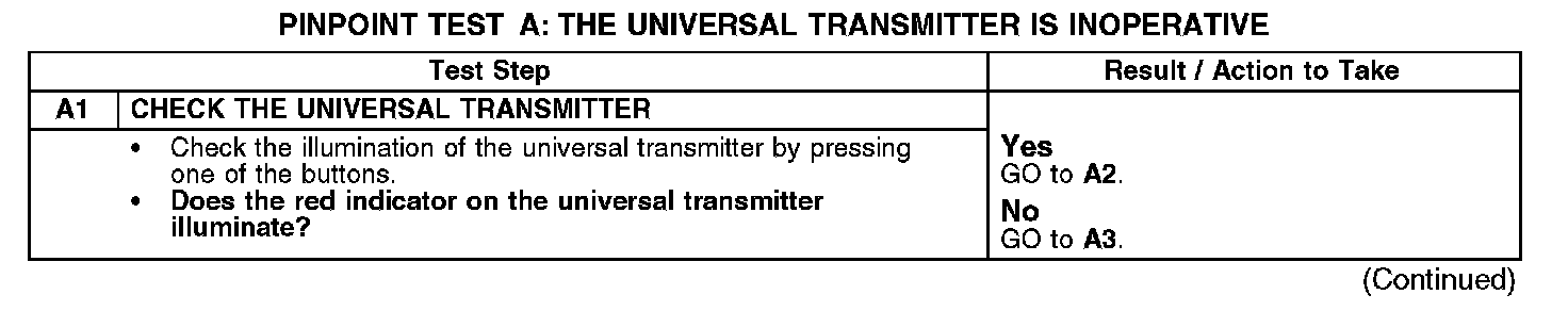 PINPOINT TEST A: THE UNIVERSAL TRANSMITTER IS INOPERATIVEA1: