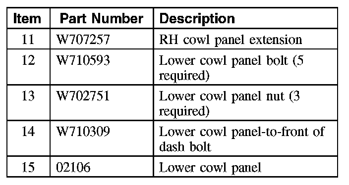 17. CAUTION: Incorrect installation of the lower/upper cowl panel grille may cause damage to the windshield. Make sure the cowl panel grille clips are located under the windshield prior to installation.