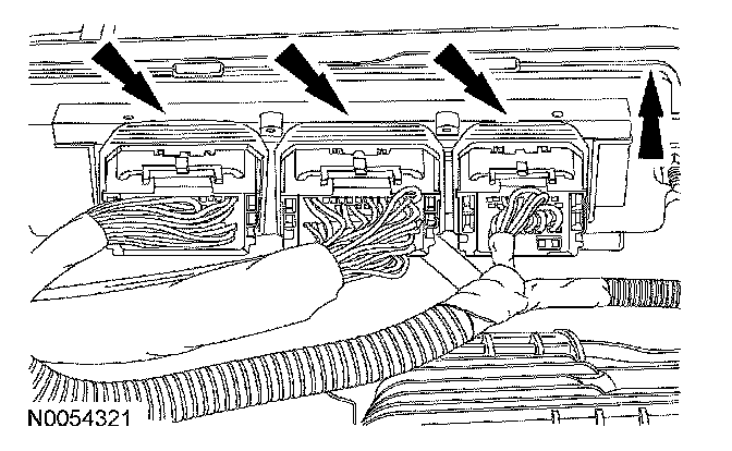 12. Disconnect the electrical connectors from the powertrain control module (PCM).