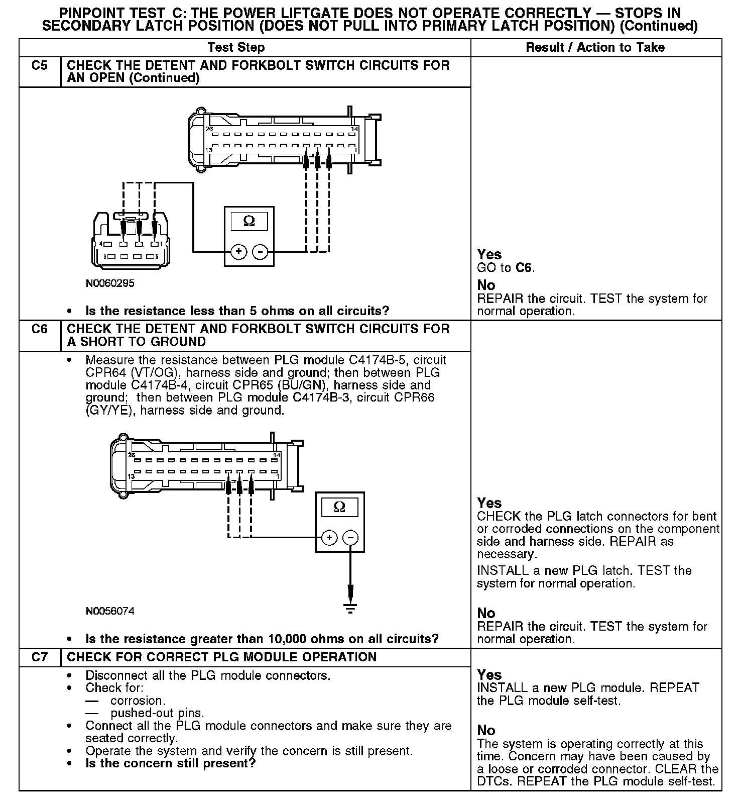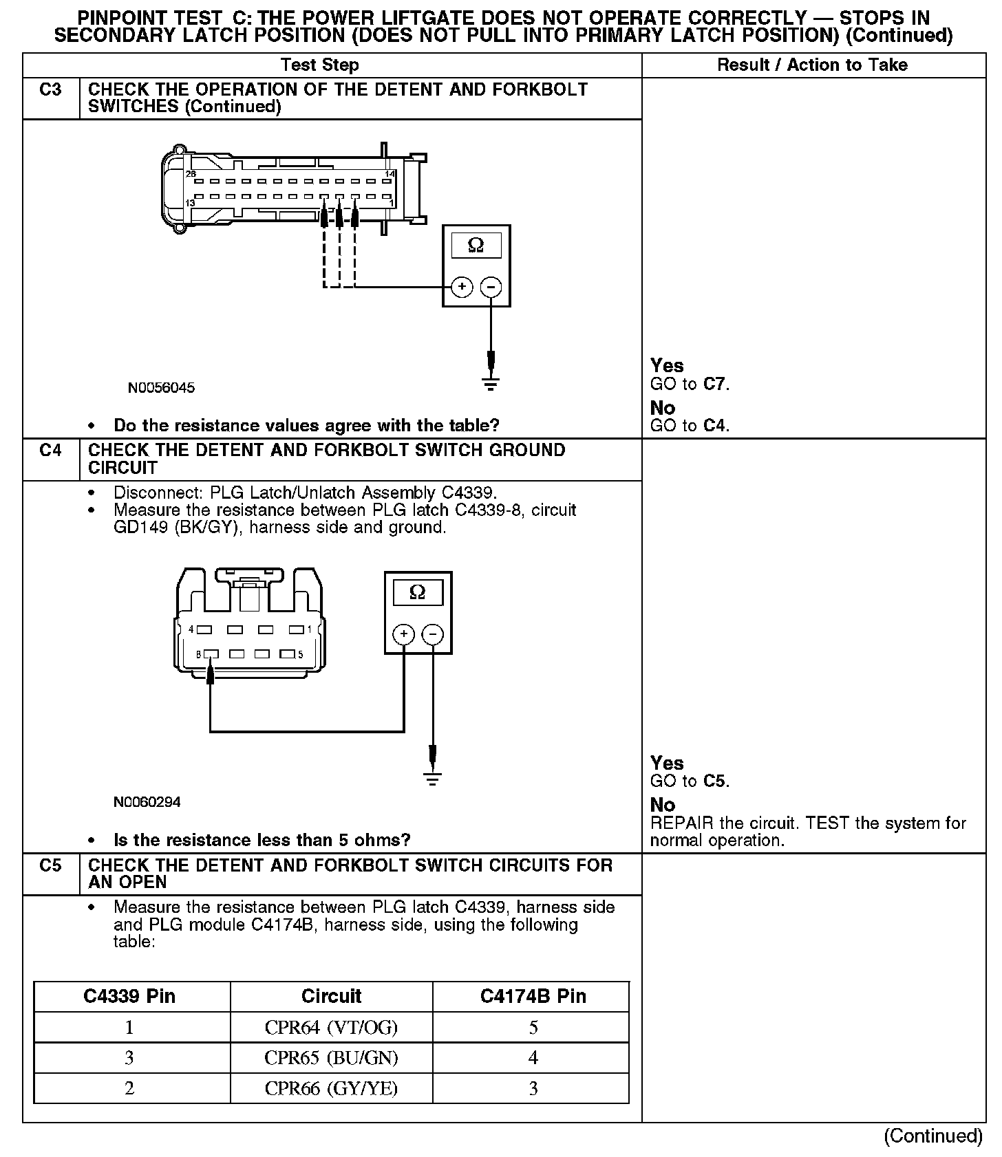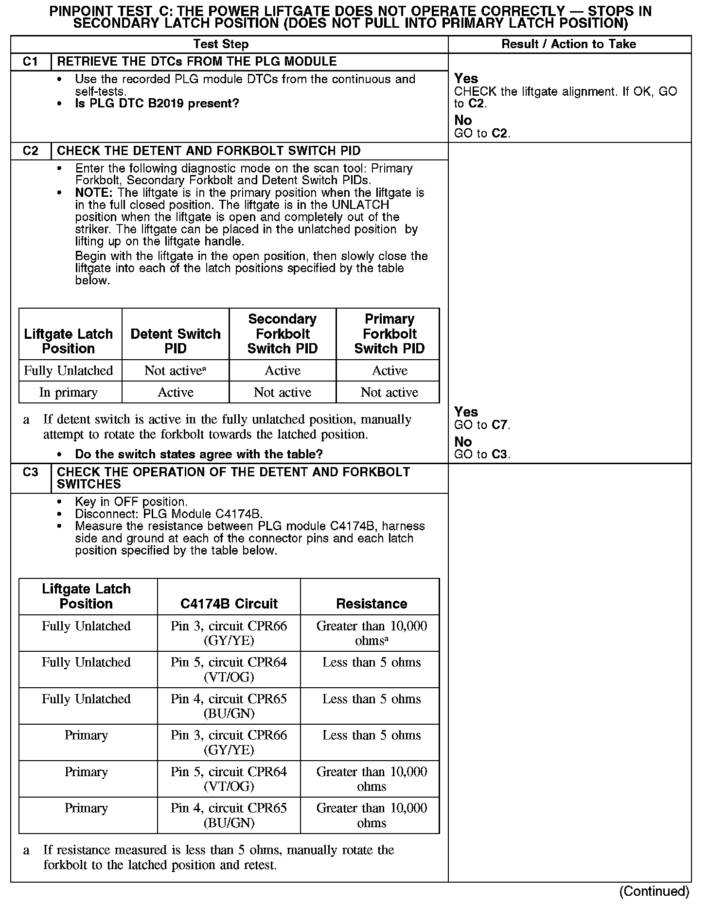 PINPOINT TEST C: THE POWER LIFTGATE DOES NOT OPERATE CORRECTLY - STOPS IN SECONDARY LATCH POSITION (DOES NOT PULL INTO PRIMARY LATCH POSITION)C1-C3: